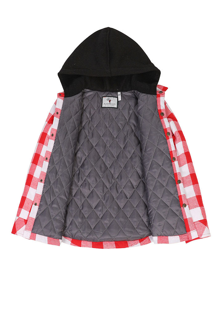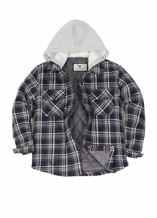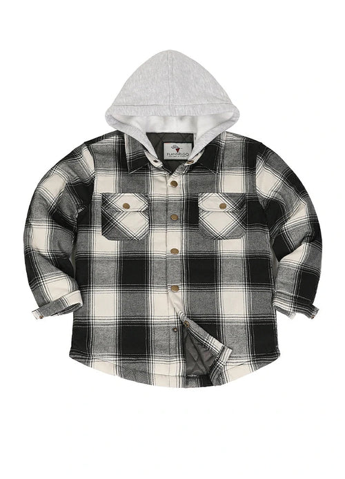 Kids Boys and Girls Quilted Lined Hooded Flannel Shirt Jacket,Snap
