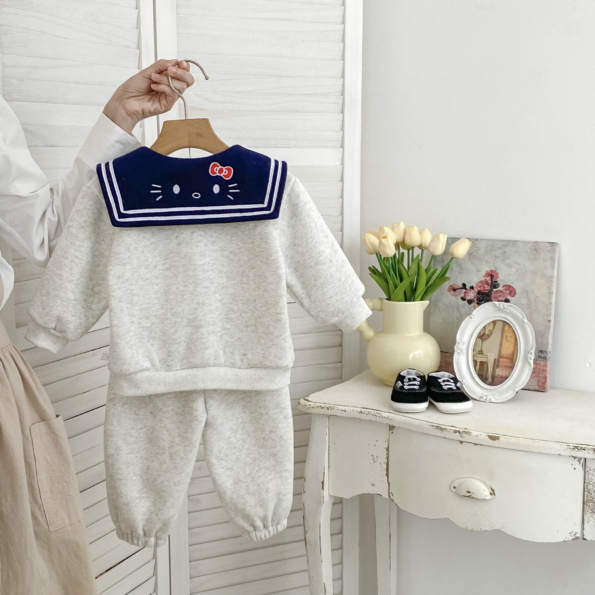 This elegant clothing set combines a charming cartoon-patterned preppy coat with solid color pants, designed specifically for baby girls during the spring and autumn seasons. Crafted for comfort and style, the soft fabric ensures warmth on cooler days while maintaining breathability. The coordinated ensemble offers both practicality and a timeless aesthetic, making it an ideal choice for parents seeking refined yet playful attire for their little ones.