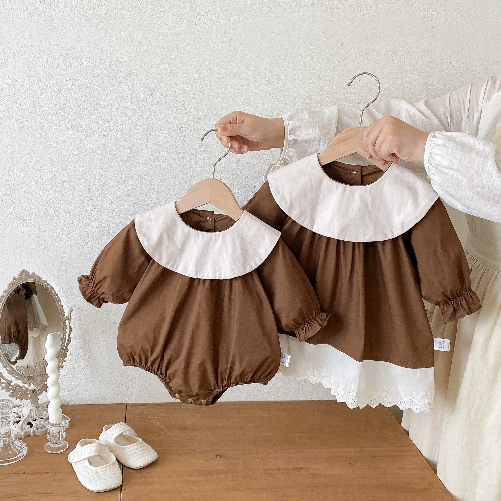 Autumn Baby Kids Girls Color Patchwork Long-sleeved Onesies and Dress