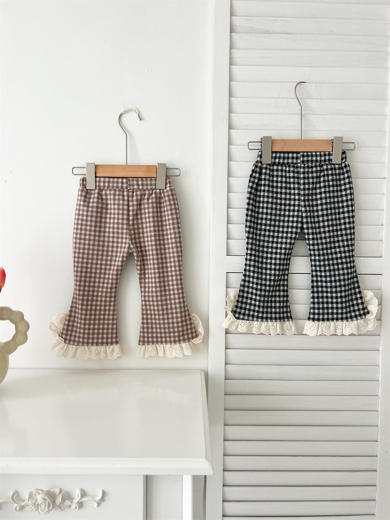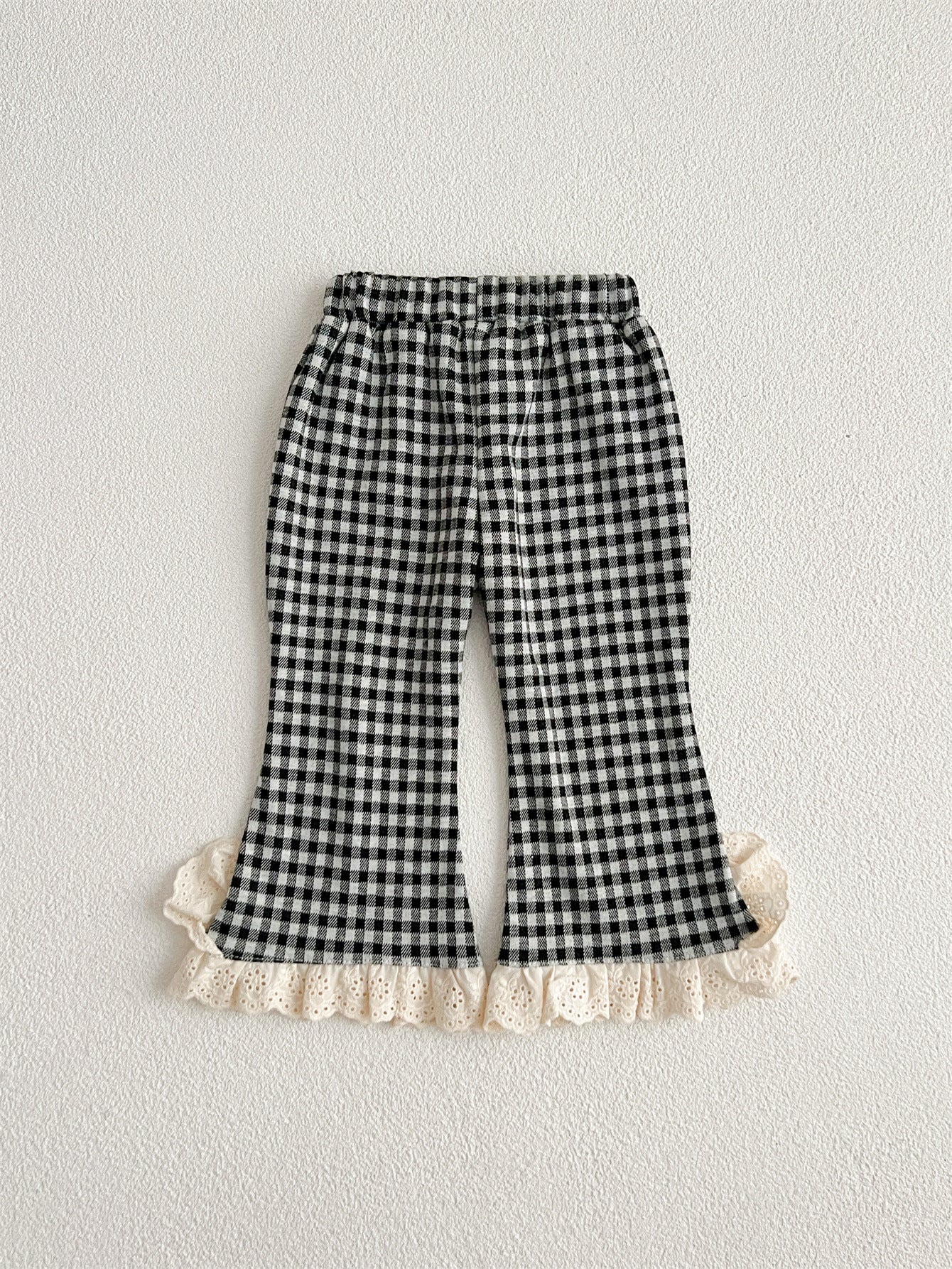 Arrival Autumn Baby Kids Girls Cheap Plaid Trousers Pants with Lace