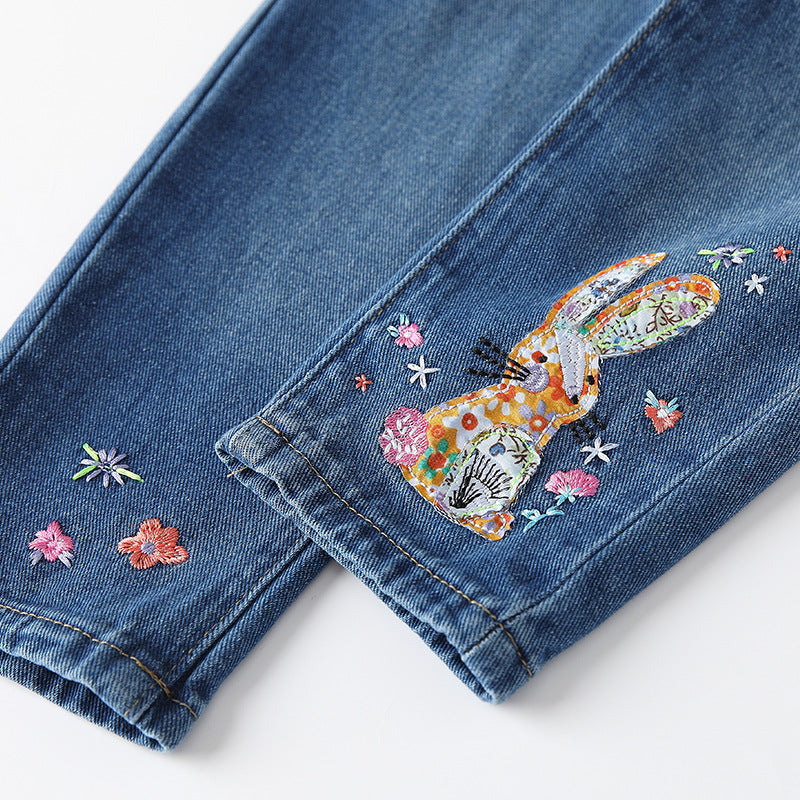 Arrival Autumn Baby Kids Girls Colorful Flowers Pattern Denim Pants