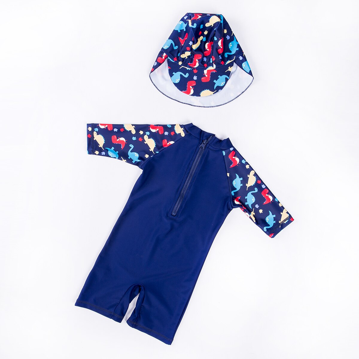 1 6Y Kid Toddler Boys Dinosaur Swimsuit Hats 2PCS