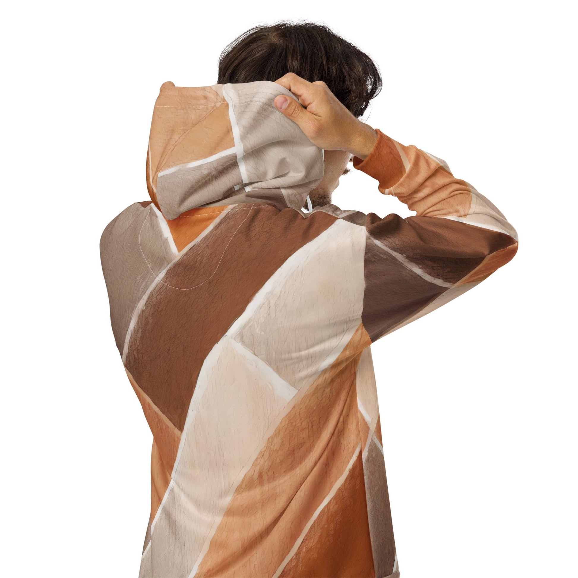 Mens Full Zip Graphic Hoodie - Brown Rustic Watercolors Print