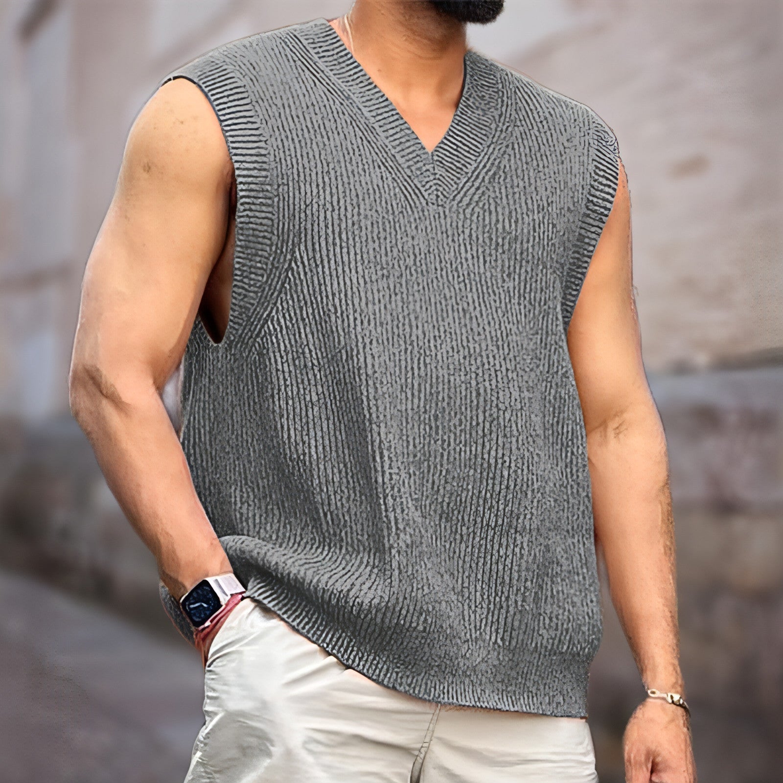 Knitwear Street Slim Fit V-neck Sleeveless Vest Sweater Men