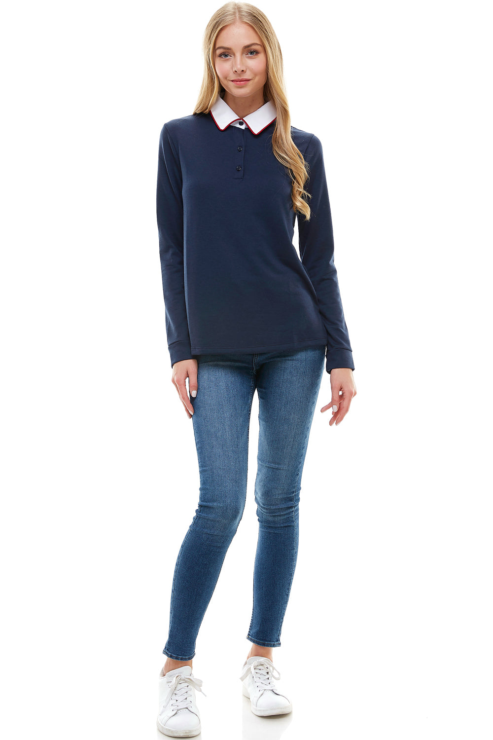 Women's Long Sleeve Polo Shirt with Contrast Collar