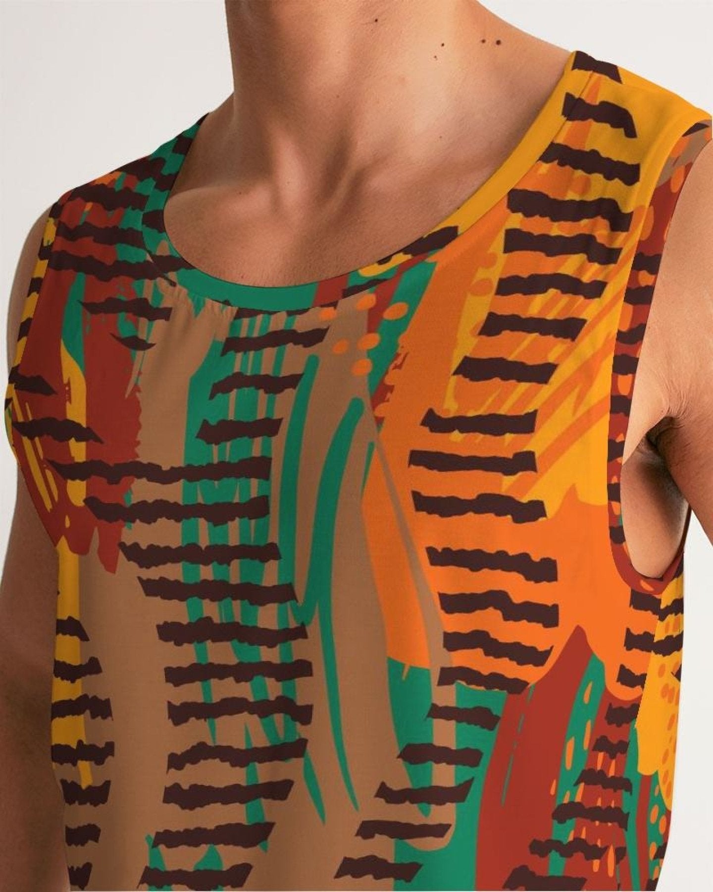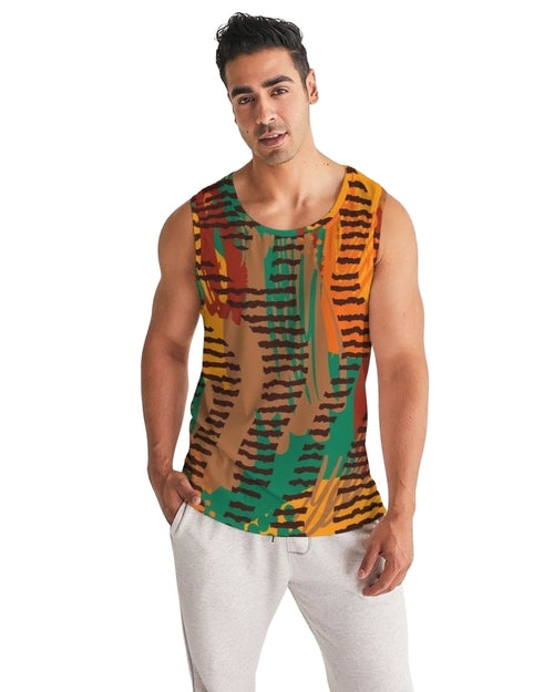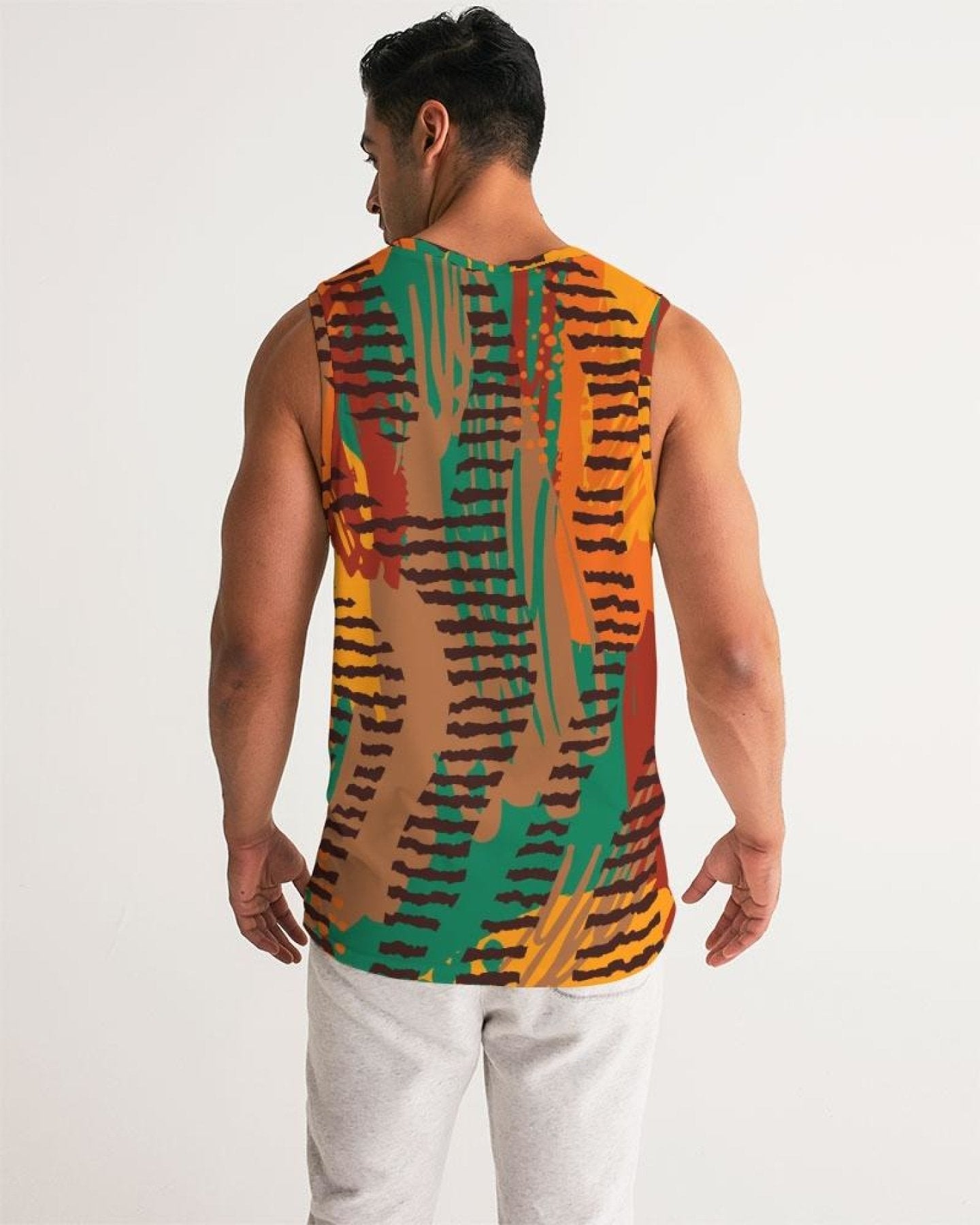 Mens Tank Top - Orange and Brown Tie Dye Pattern Sports Top