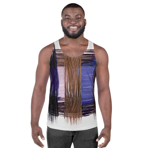 Mens Stretch Fit Tank Top, Rustic Brown Interweave Print. Our men's tank top is a versatile essential that combines comfort and style seamlessly. Crafted from lightweight and breathable fabric, this tank top ensures optimal ventilation and comfort for any activity, whether you're hitting the gym or enjoying outdoor adventures. The sleeveless design and classic crew neckline offer timeless appeal, making it easy to pair with any bottoms for a laid-back look. The relaxed fit provides freedom of movement, making it ideal for active days or simply lounging at home. Elevate your wardrobe with our essential men's tank top, designed to keep you looking and feeling great in any situation.