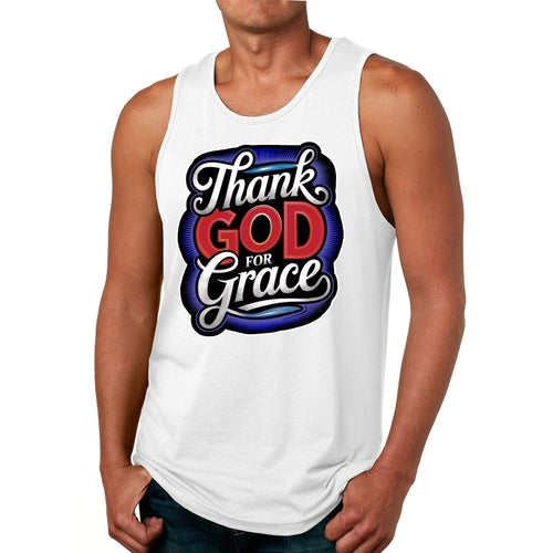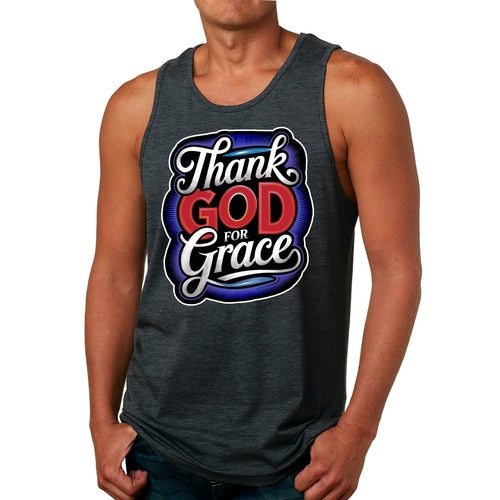 Mens Tank Top, Thank God for Grace. This short sleeve graphic tee t-shirt is crafted with the creative individual in mind, offering a dynamic style for those who appreciate personal style focused designs. This tee features a stylish print that stands out, making a bold and expressive statement. With its edgy graphics and modern design, it captures the essence of contemporary fashion while providing comfort for everyday wear. The tee effortlessly merges casual and artistic elements, making it an ideal choice for those who seek to infuse their wardrobe with a touch of originality. Perfect for individuals who embrace their creativity, this graphic T-shirt serves as a canvas for self-expression, allowing wearers to showcase their unique personalities through fashion.
