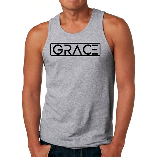 Mens Fitness Tank Top Graphic T-Shirt Grace Christian Black Illustration. This fitness tee is super comfy. Made with preshrunk cotton, which means the shirt retains its softness and size after being washed.
