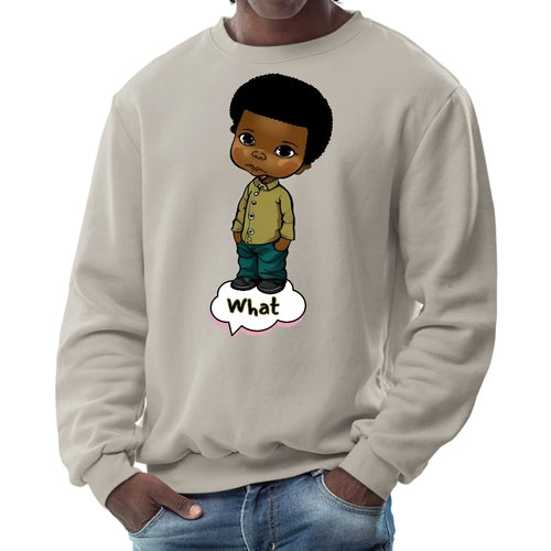 Mens Graphic Sweatshirt - what - African American Boy Illustration Art