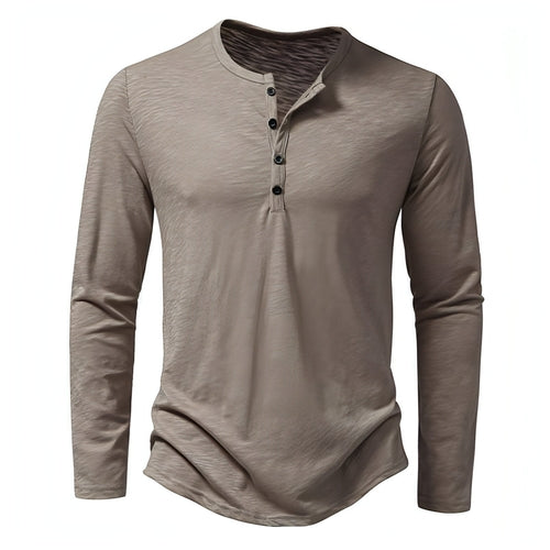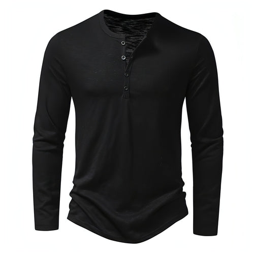 Mens Clothing Long Sleeve T-shirt Fashion Button Henry Collar Tops