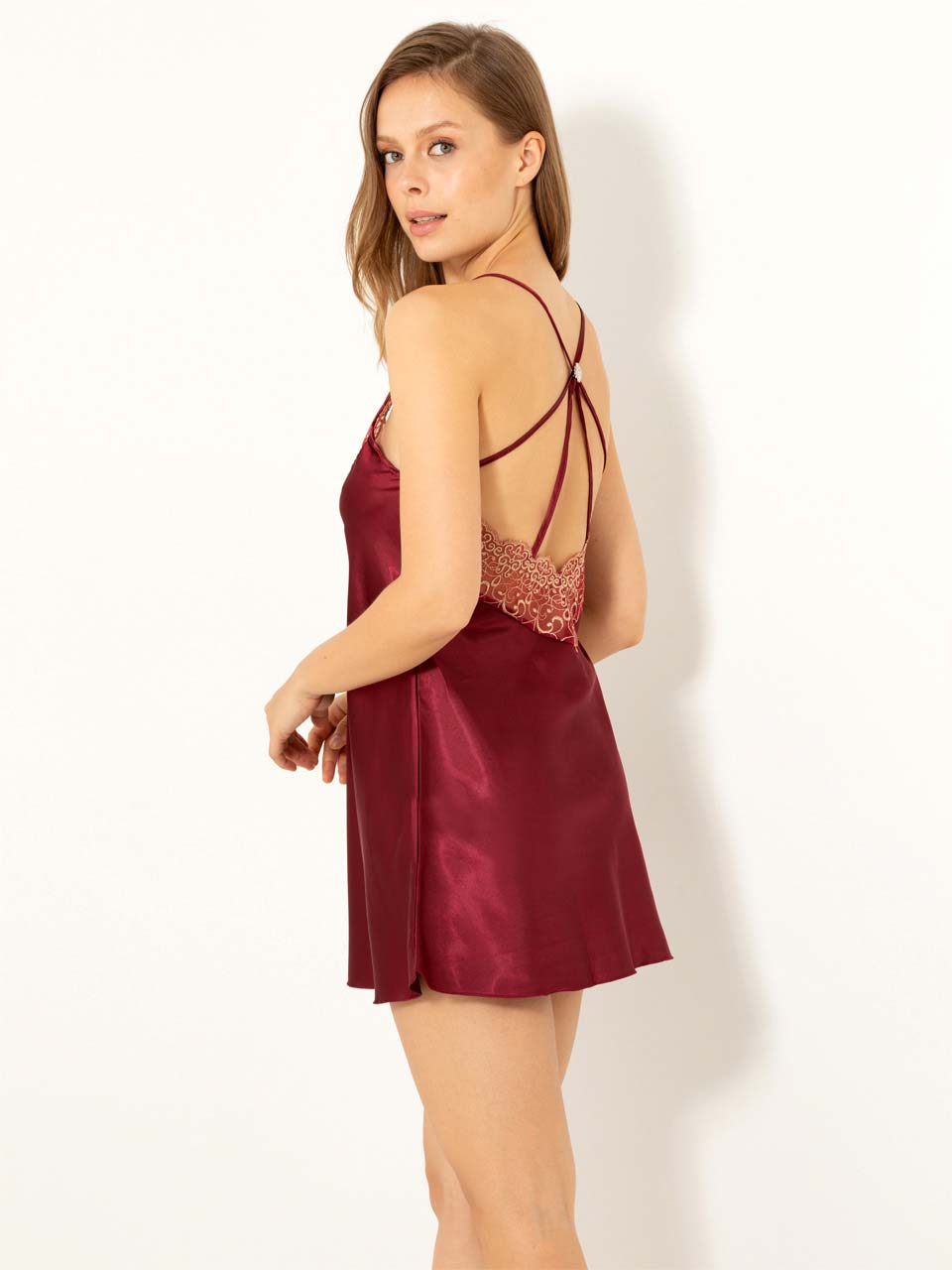 Back Cross Strap Stony Guipure Satin Mini Sleepwear