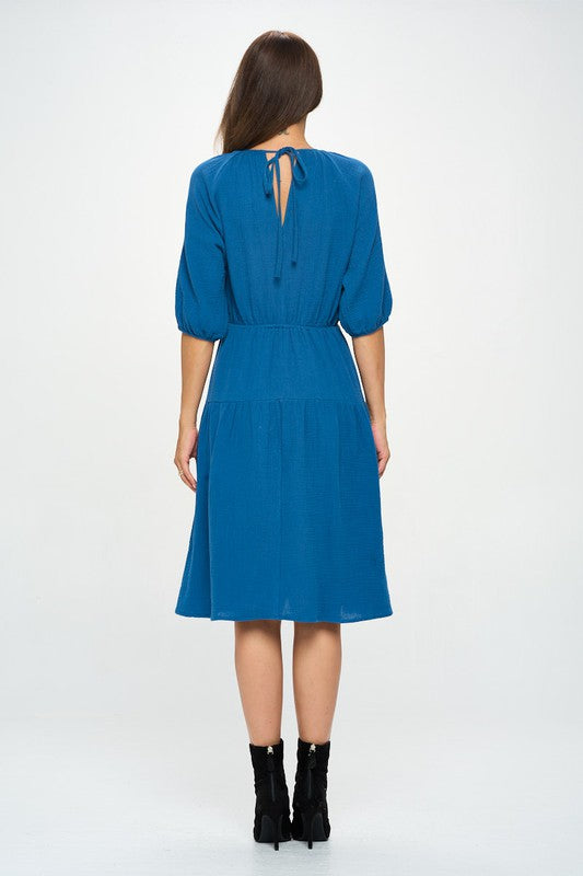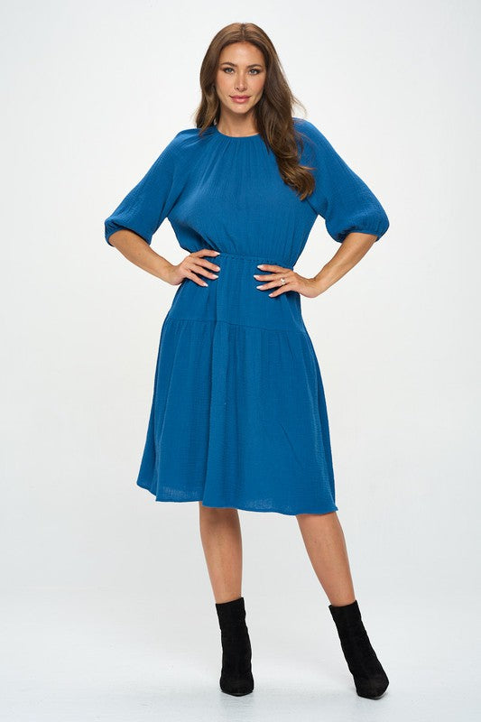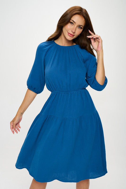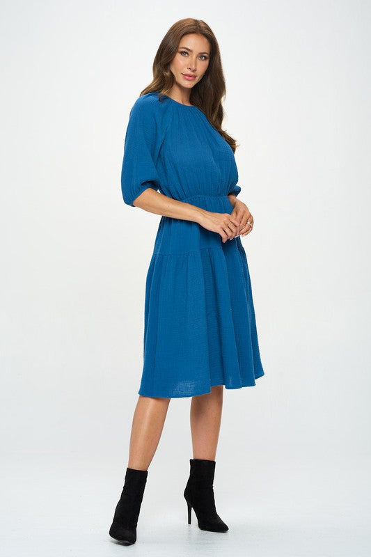 Made in USA Cotton 3/4 Sleeve Tiered Midi Dress