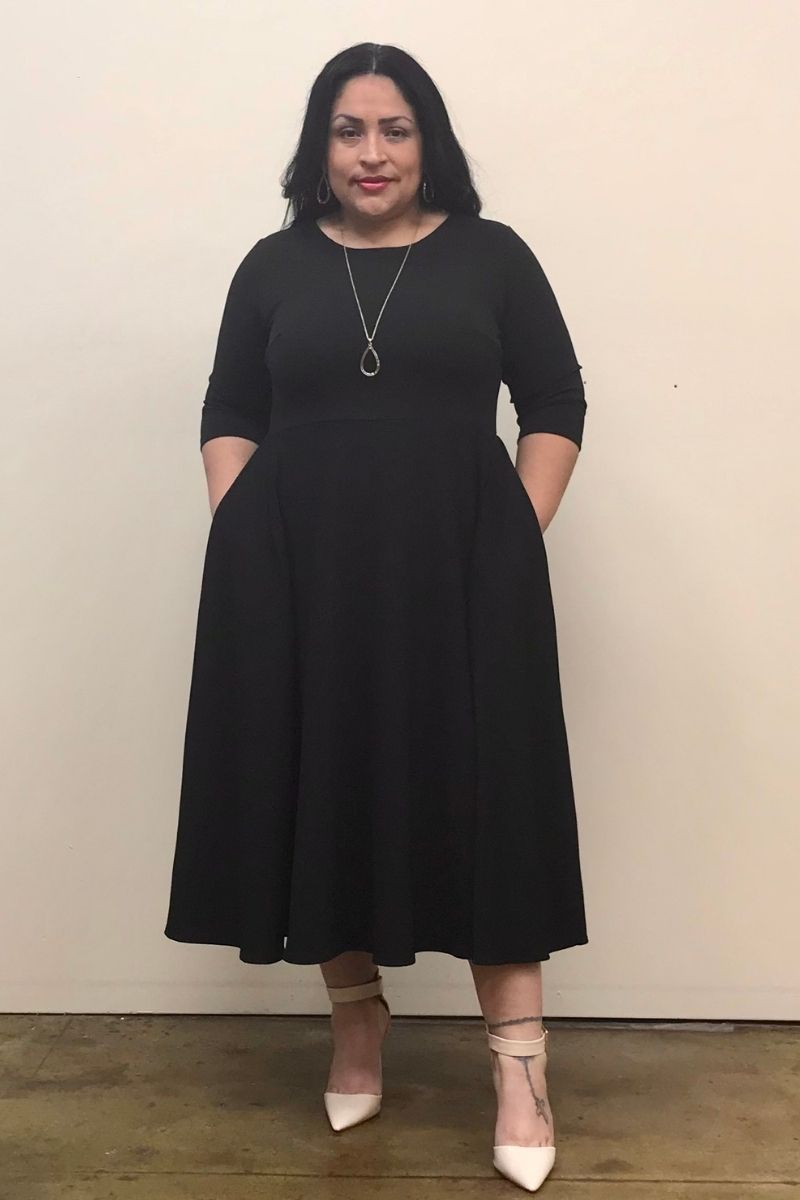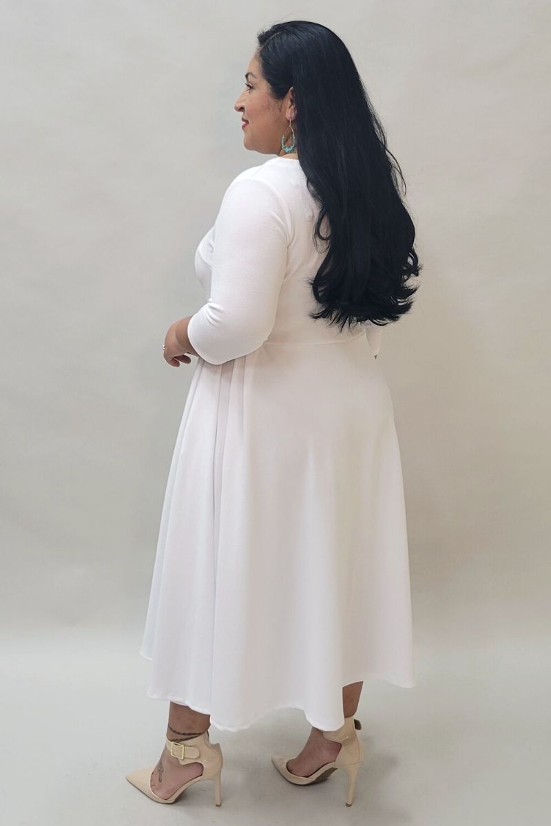 Plus Size Midi, A-Line Dress with 3/4 Sleeves and Pockets