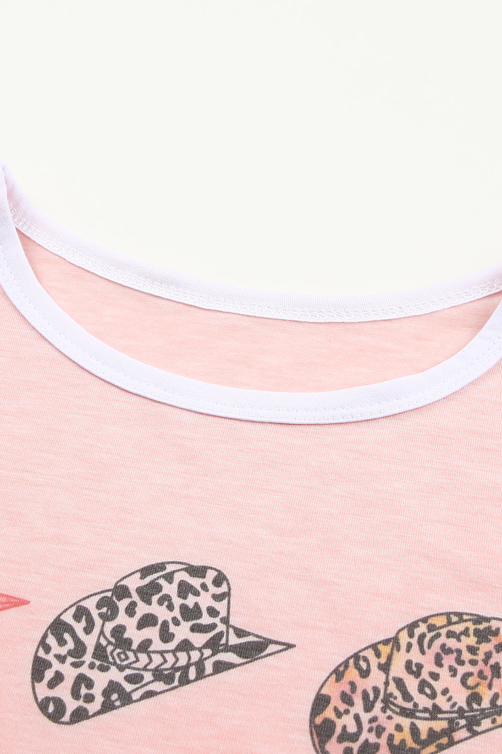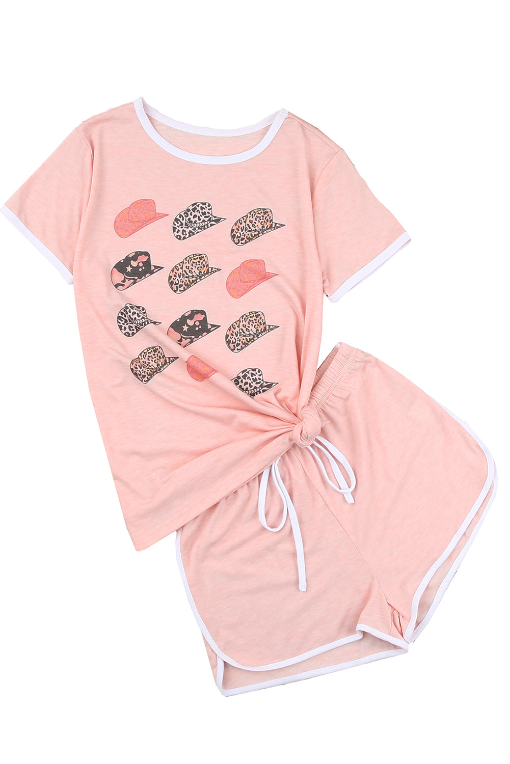 Pink Leopard Hat Print Short Sleeve T Shirt and Drawstring Shorts