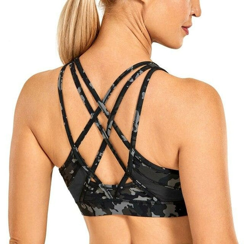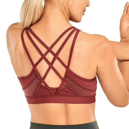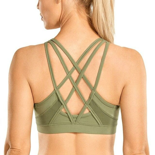 Women's Strappy Sports Bras V Neck Medium Impact Wirefree Padded Yoga
