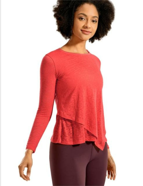 Women's Burnout Cotton Yoga Tee Sports Shirt Classic Fit Double Layer