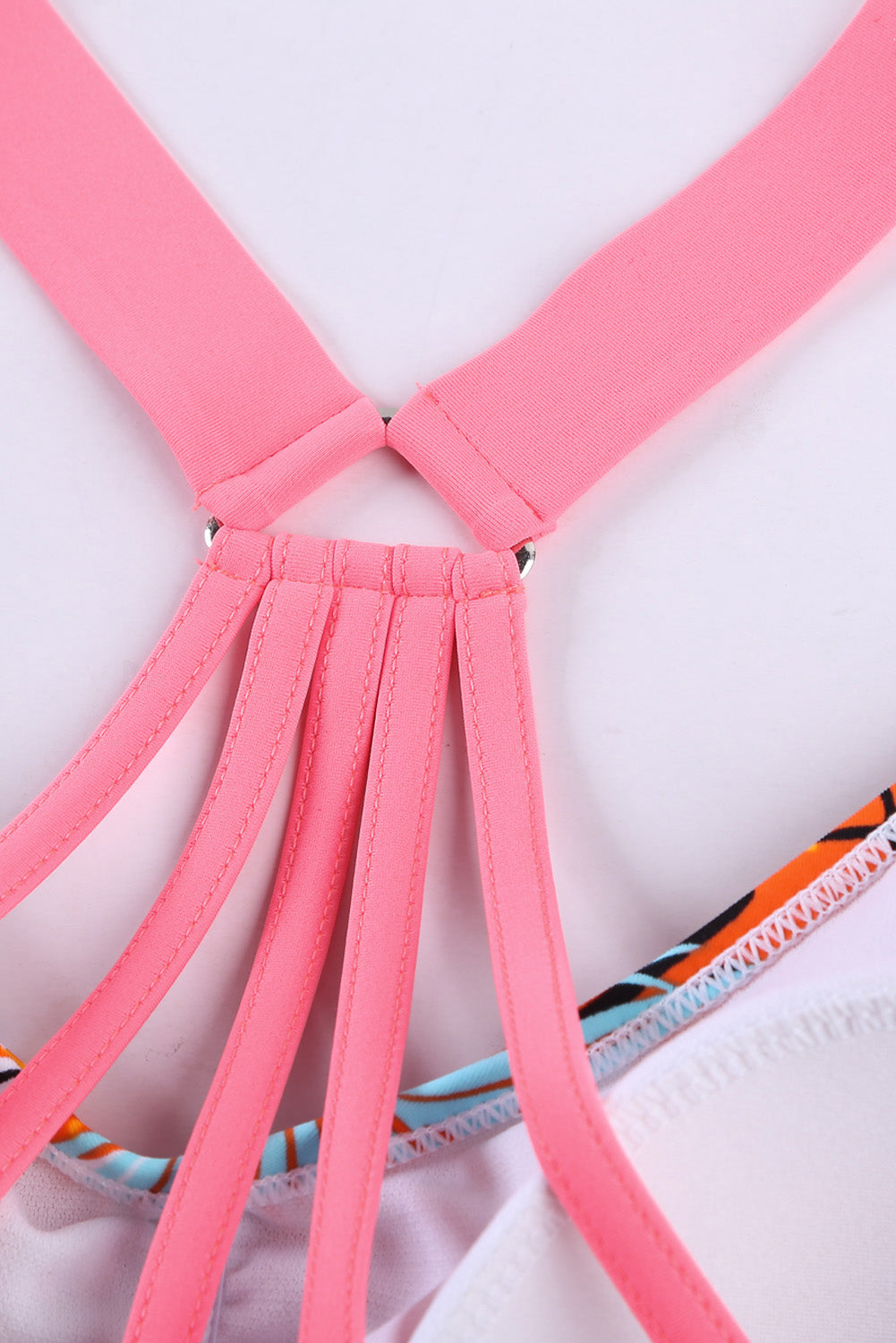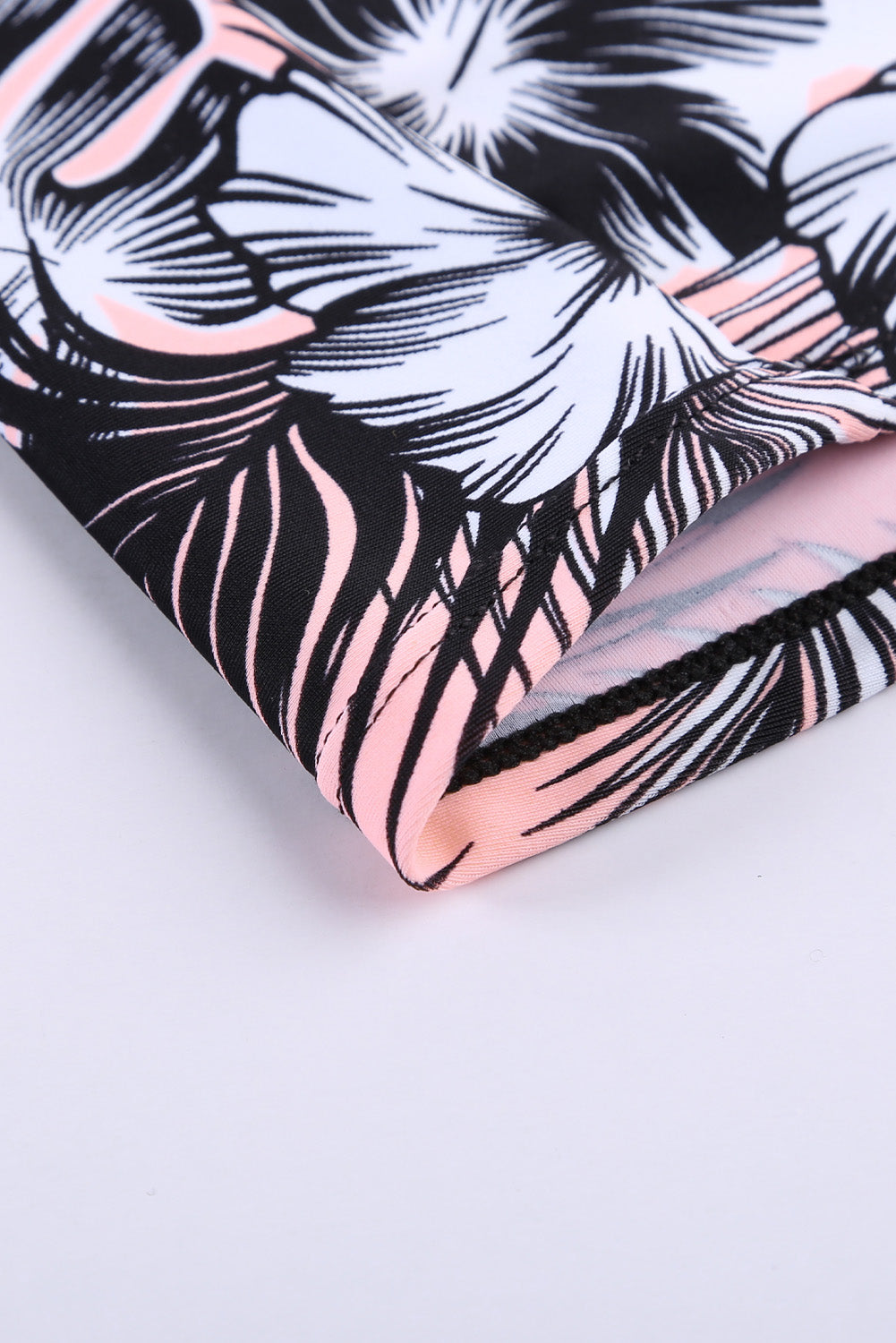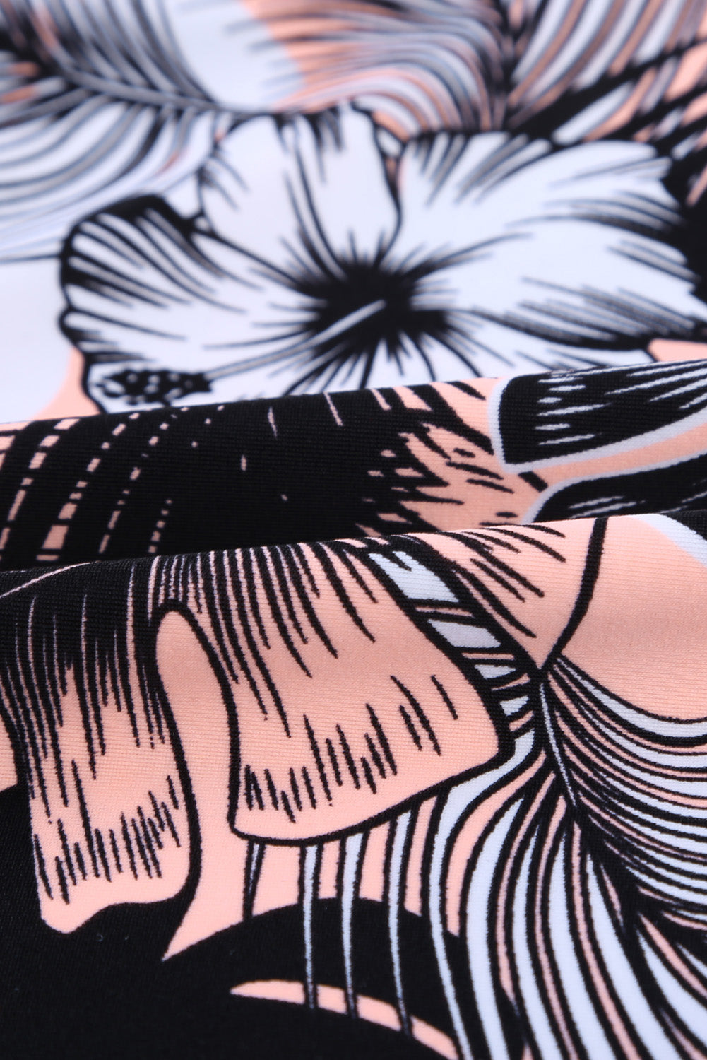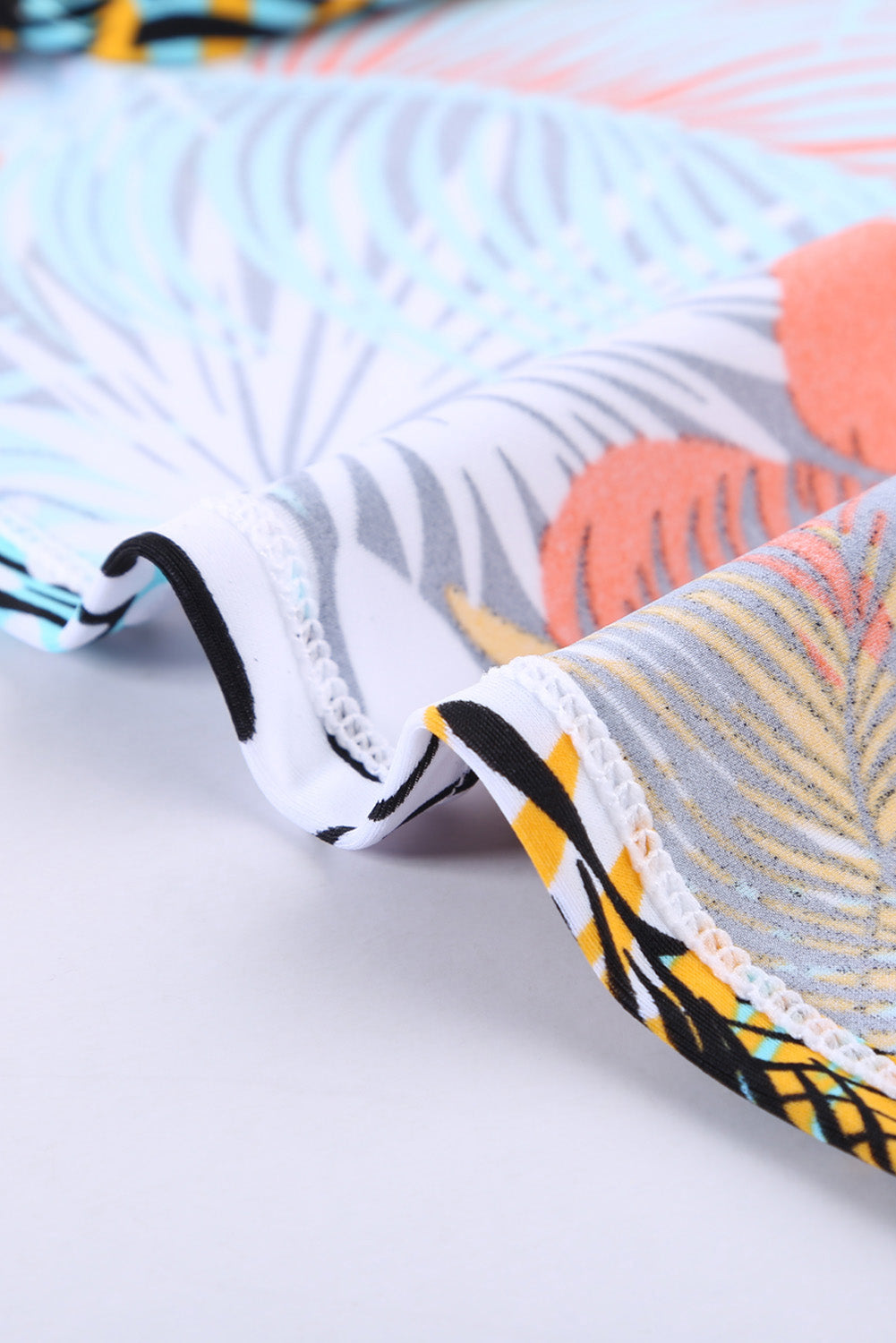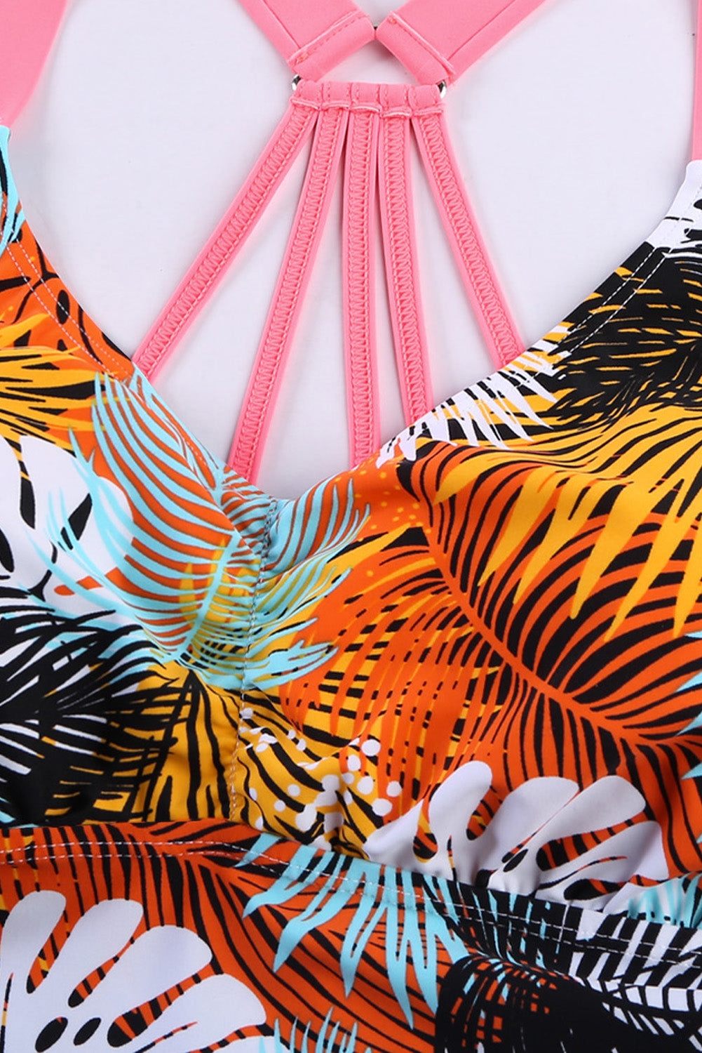 Yellow Floral Printed Strappy Racerback Tankini Swim Top