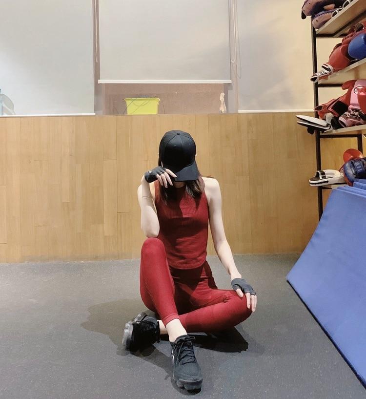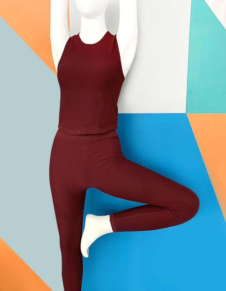 Seamless Sportswear Yoga 2 PCS Set GYM Fitness Sports Tracksuit Ribbed Tank Top Hips Lifting Leggings Two Piece Set