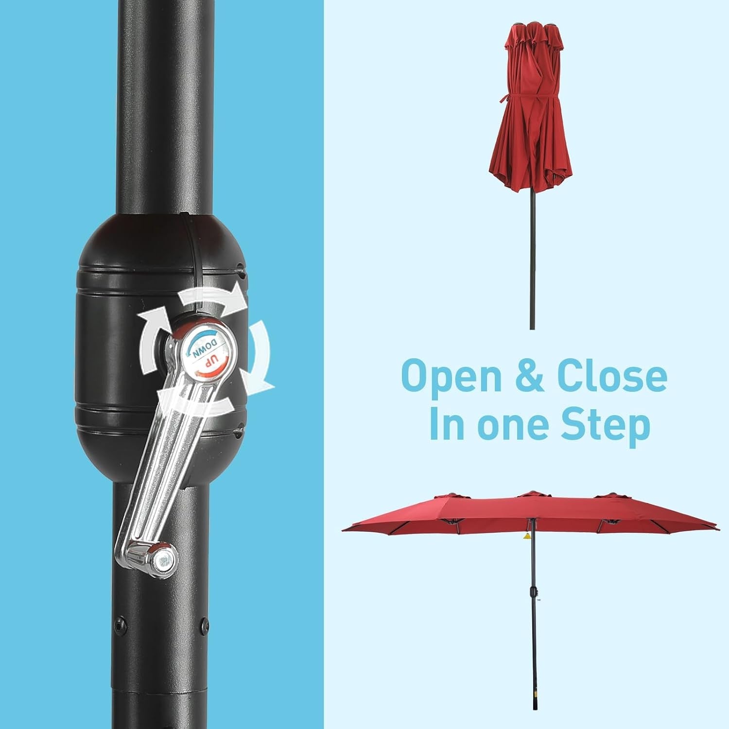 • Effortless Operation: Equipped with a built-in crank mechanism, making opening and closing the umbrella simple and convenient.