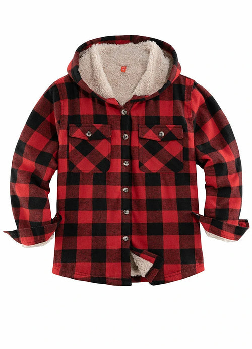 Kids Matching Family Buffalo Red Hooded Plaid Flannel Shirt Jacket
