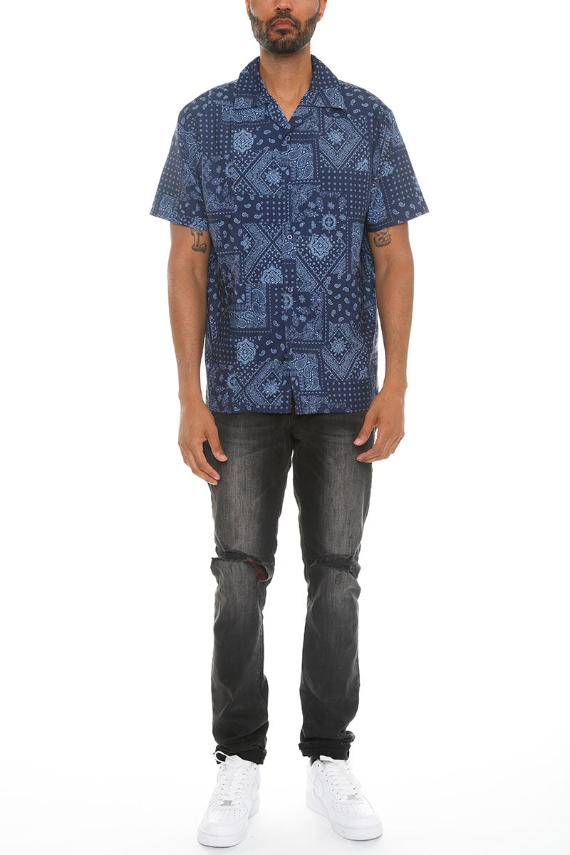Mens Paisley Print Button Down Shirt