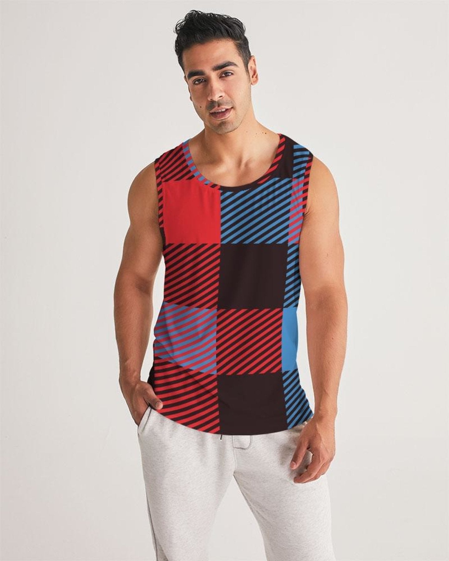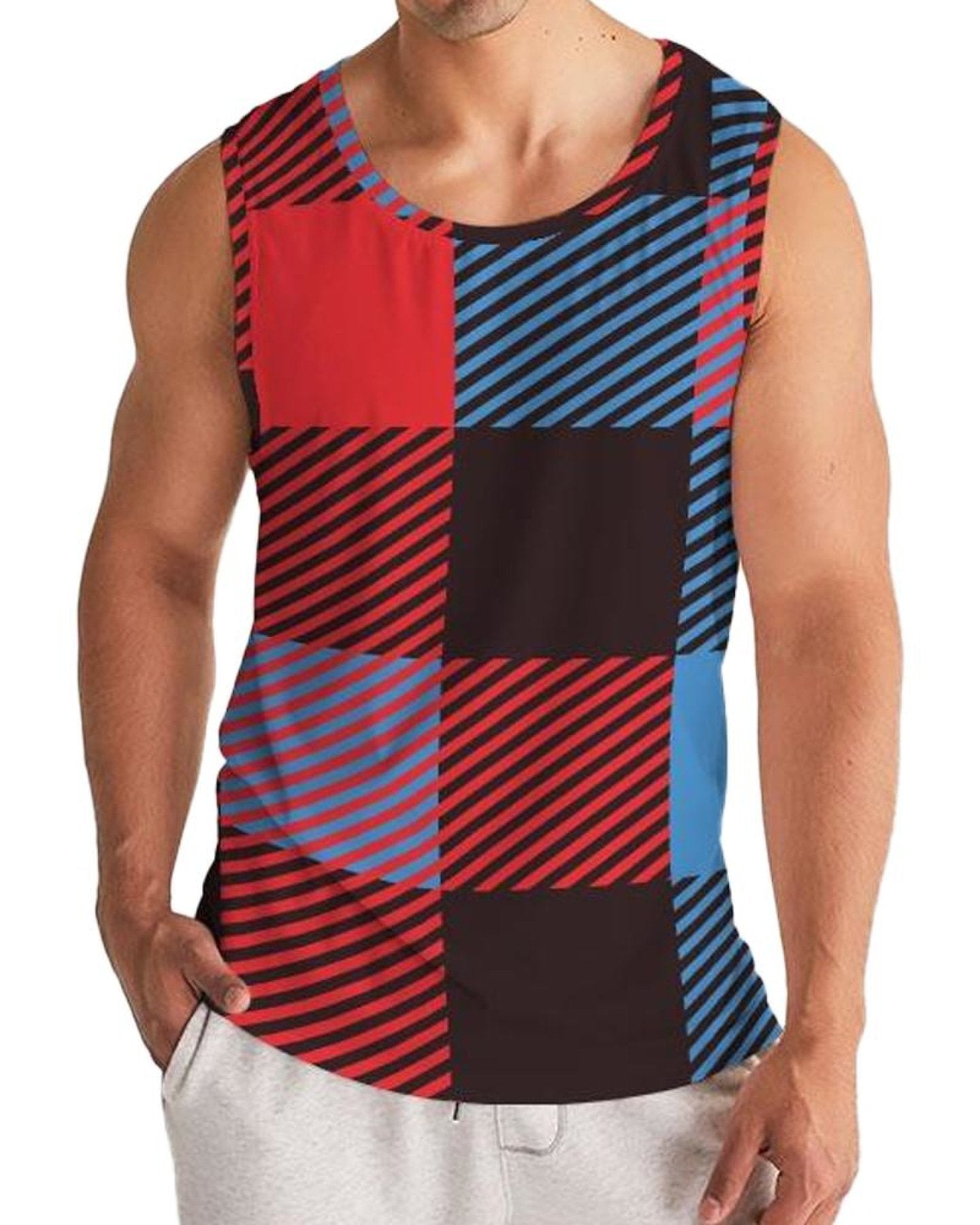Mens Tank Top - Multicolor Flannel Pattern Sports Top