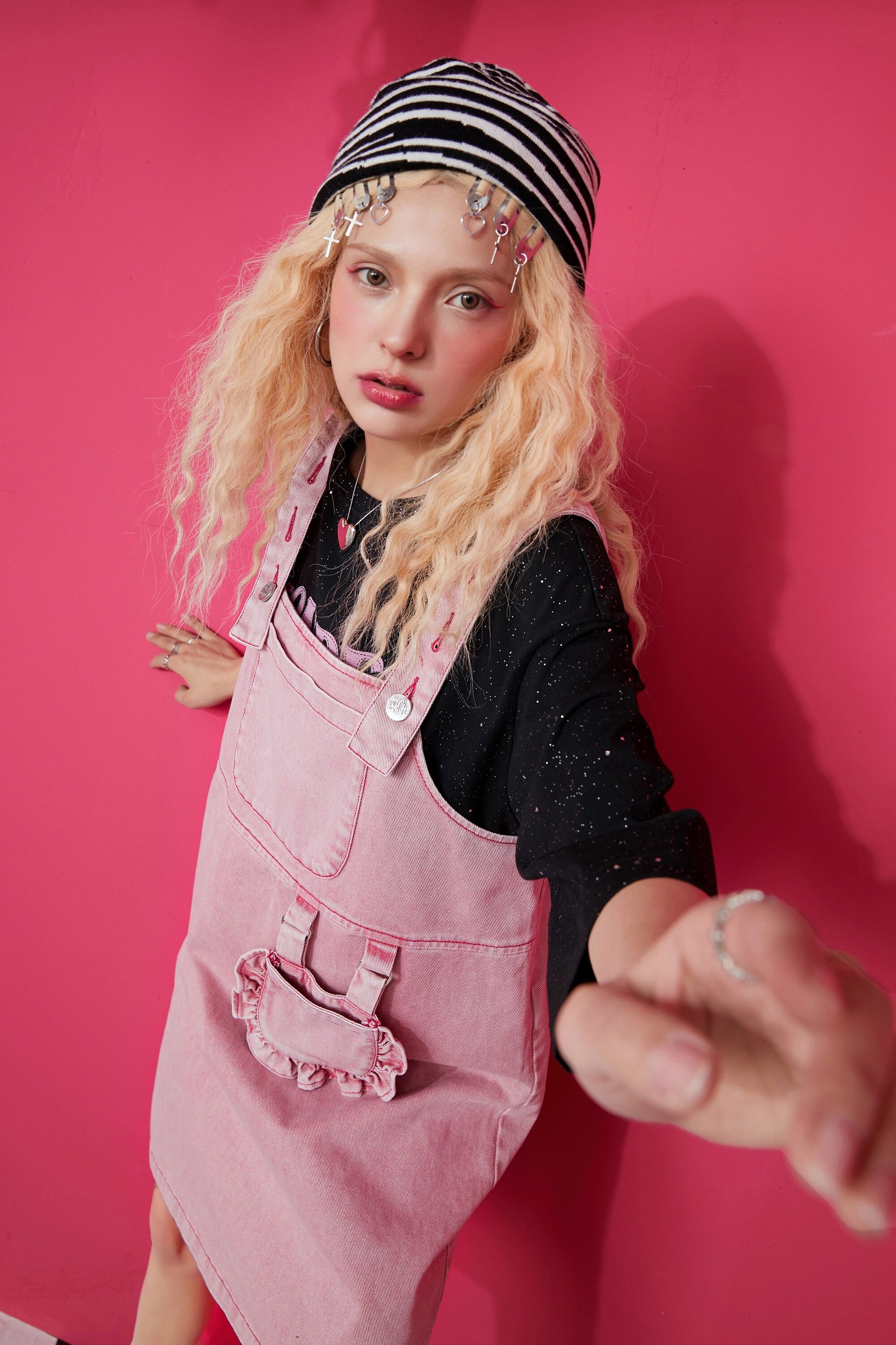 Solid Pure High Waist Casual Women Overall Skirts,Spring ELF Vintage